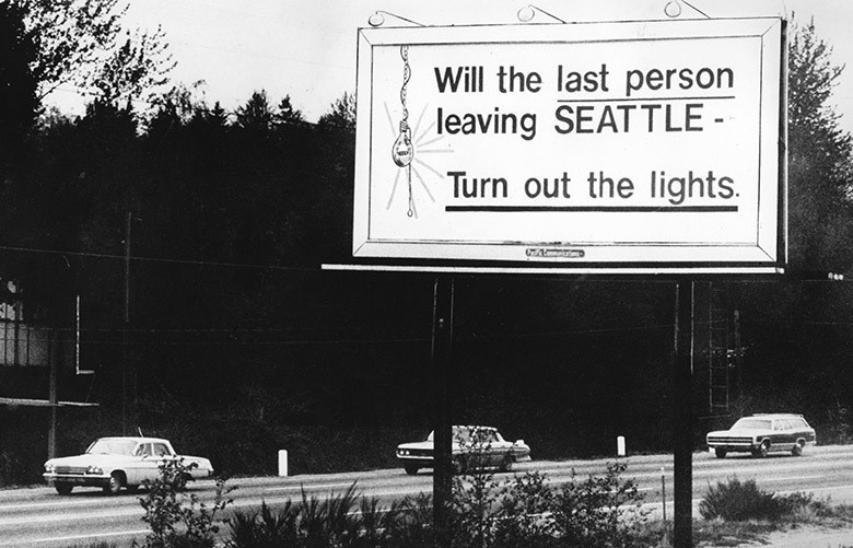 1971年4月,波音的財務受到747的拖累,瀕臨破產。西雅圖好事之徒掛出這個著名廣告牌:“最後一個離開西雅圖的人,請關燈”