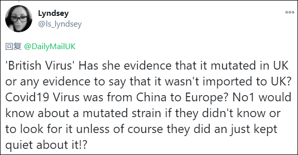 “她有證據表明它(病毒)是在英國變異的嗎?有任何證據證明變異病毒不是進口到英國的嗎?”