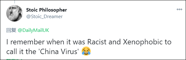 “英國病毒…當有人説“中國病毒”的時候,被認為是種族主義。我想知道這有什麼不同?”