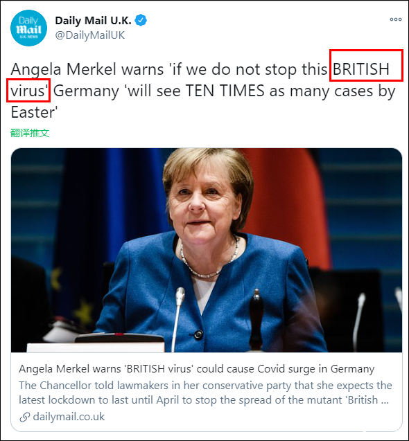 默克爾“英國病毒”的言論尚未得到其他媒體的證實。