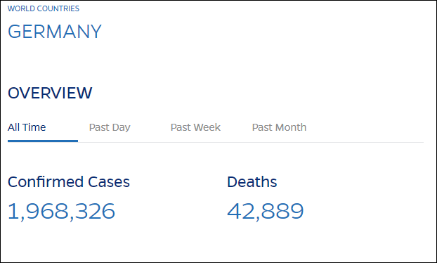 而德國累計確診新冠肺炎1968326例,累計死亡42889例。