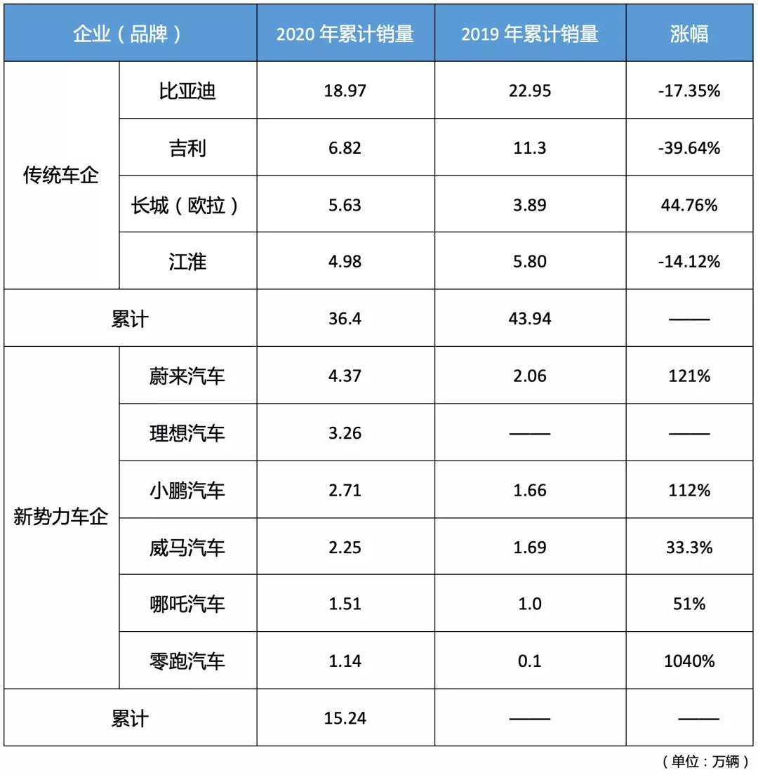 從上表數據(趣識財經不完全統計)可以看出,2020年,傳統新能源車企銷量,仍處於行業主導地位。