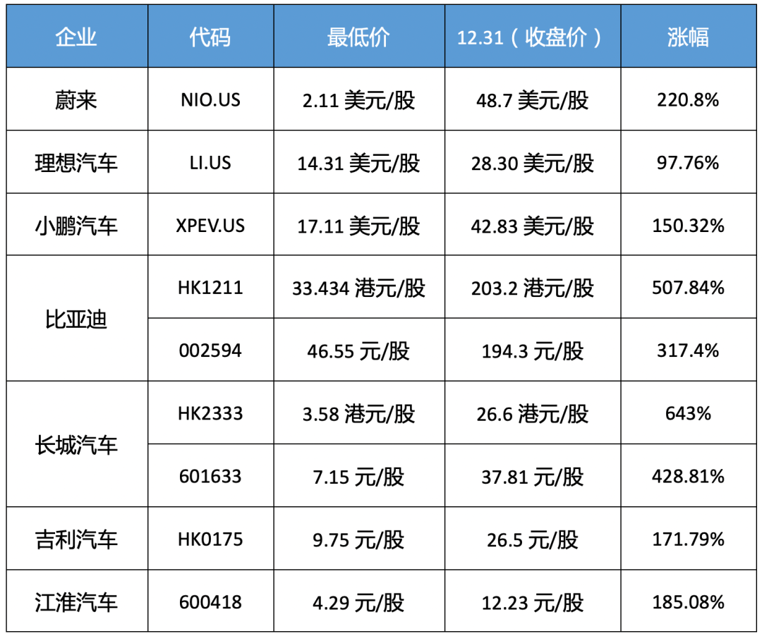 2020年國內造車新勢力以及傳統新能源車企正處紅利期,最好的證明或是資本市場對其的反應。