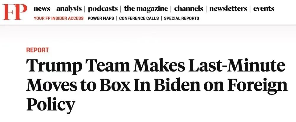 文章稱,資深外交官和外交政策專家認為,這一系列政策調整是有意阻礙新政府外交政策的“臨別遺言”。