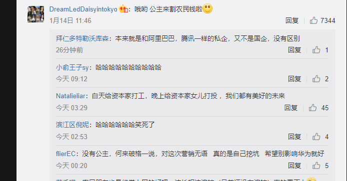 這等於是在提醒網友,“我和你不一樣”,“我們華為老闆的女兒,和你們普通人不一樣”,也難怪下面的評論全都是這個畫風:
