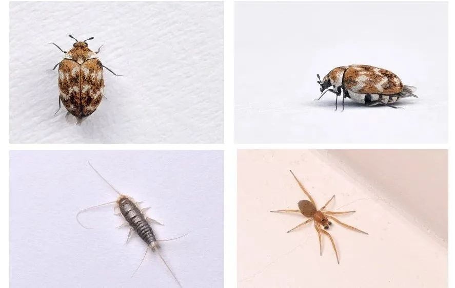 像第一排的兩張是同一個物種,叫做小圓皮蠹,它五六年前出現在我家裏,它非常漂亮,但是當時我的相機不行,後來它就消失了,可能是我們家變乾淨了。今年4月份它又重新出現了,我就特別高興。當然它的幼蟲是在衣櫃裏吃衣服,我們家的衣服都不是很值錢,所以損失不大。