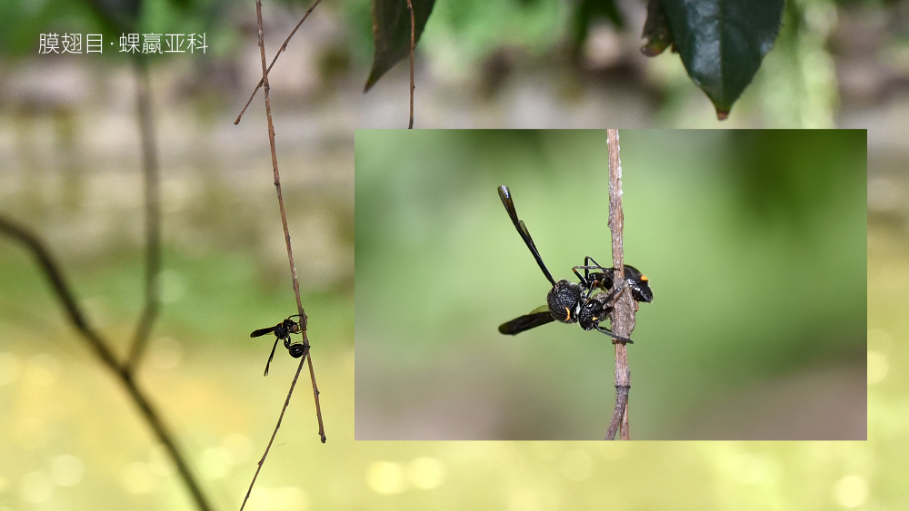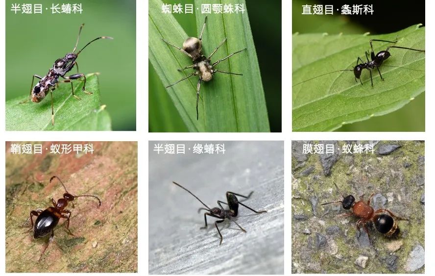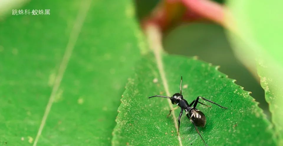 所以很多類羣,包括中間上面的,蜘蛛又來了,甚至右下角的蜂它也來模仿螞蟻。但是模仿螞蟻最成功的是叫做蟻蛛的一個類羣,它是屬於跳蛛科的蟻蛛屬。