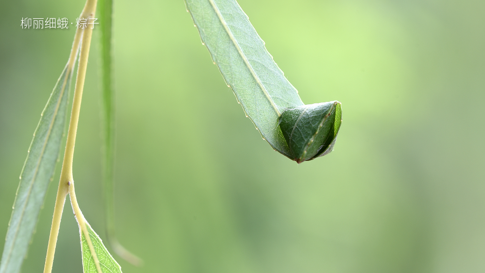 它非常像一個粽子,這是柳麗細蛾的巢。這是多年以前拍的,每年到了端午節,我都會把這幾張照片拿出來,祝大家端午安康。