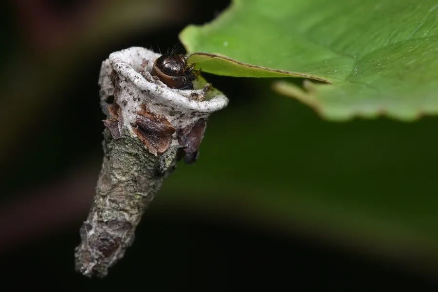 這一坨,你們可能會認為它是一坨糞便,它真的是一坨糞便,這個是龜甲幼蟲用自己的糞條做了一個叫糞鞘的東西,但是我覺得叫糞盾更加確切,但是它因為使用了身體以外的道具,所以它叫做偽裝。