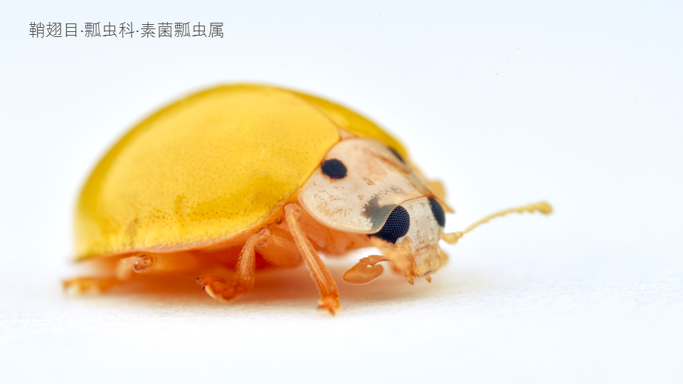 有些昆蟲它非常的萌,像這隻素菌瓢蟲,它的眼睛有一半遮在胸背板下面,看起來是一副睡不醒的樣子。