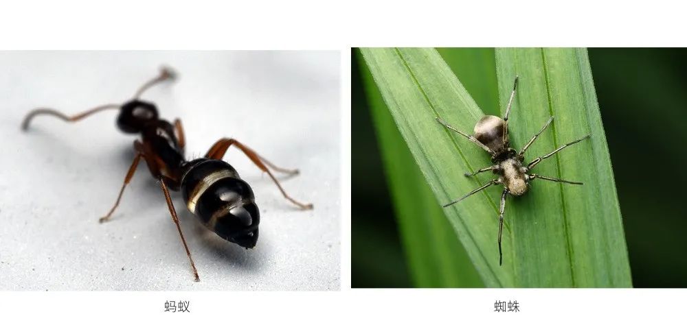 昆蟲的軀幹分為頭、胸、腹三個部分,而蜘蛛它是分為頭胸部和腹部兩個部分,換句話説蜘蛛沒有脖子。