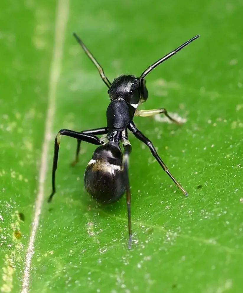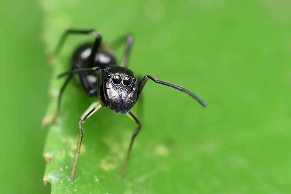 只是那些像螞蟻的特徵被保留下來了,但是蟻蛛的正臉會出賣它們,因為它屬於跳蛛科,它的大眼睛是藏不起來的。