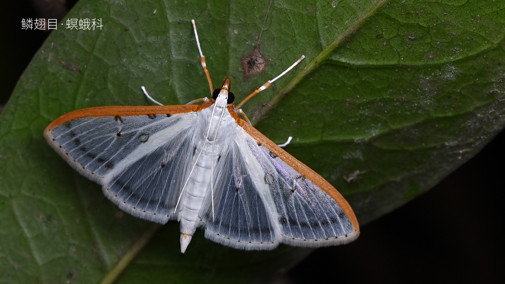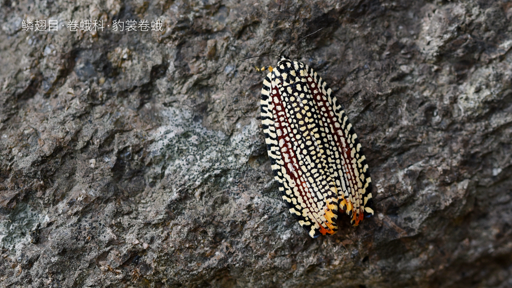 這隻豹裳卷蛾它身上有着華麗的斑點,以至於很難一眼看到它的頭部在哪裏,它的頭其實是朝上的,但是它身體的另外一端由橙色和紅色構成,非常的搶眼,如果鳥類發現了它,第一口肯定是啄這個部分,然後這個地方一碰就碎,真正的蟲子就逃走了。這是作為弱者生存策略的最後一招,我們管它叫做首尾互置。