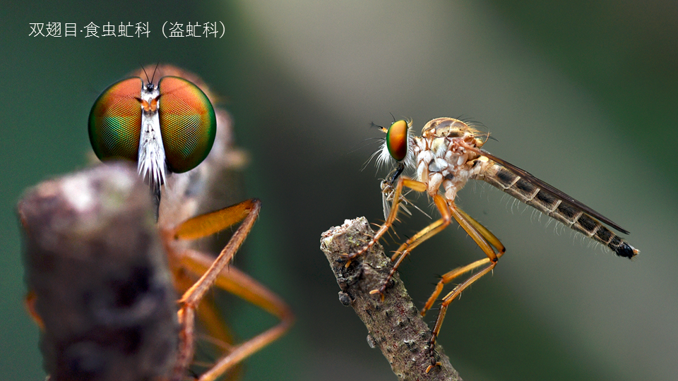 這隻食蟲虻,它從側面看非常的矯健,像一個導彈的發射架,然後它的眼睛幾乎覆蓋了頭部的大部分區域,像KTV裏的金屬麥克風。