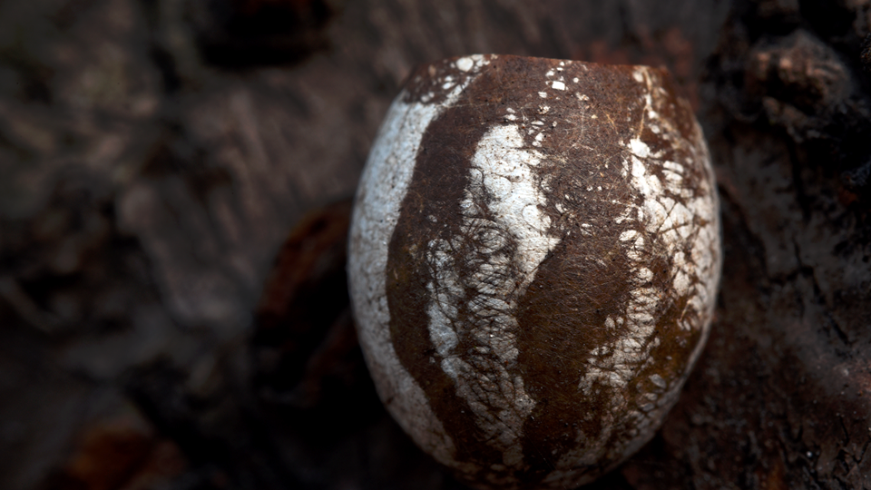 如果我們盯着細部來看的話,這些白色的地方像不像正在消融的冰川?這些細微的褐色絲痕,就變成了被流水侵蝕的河道,它們蜿蜒曲折匯聚成海洋。在我的眼裏這個不到一釐米的小東西,突然間放大了數十億倍,達到了行星尺度。