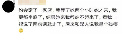 還有人相親失敗的緣由就更讓人小刀拉屁股開眼了:“你爸媽太醜了,我怕隔代遺傳。”