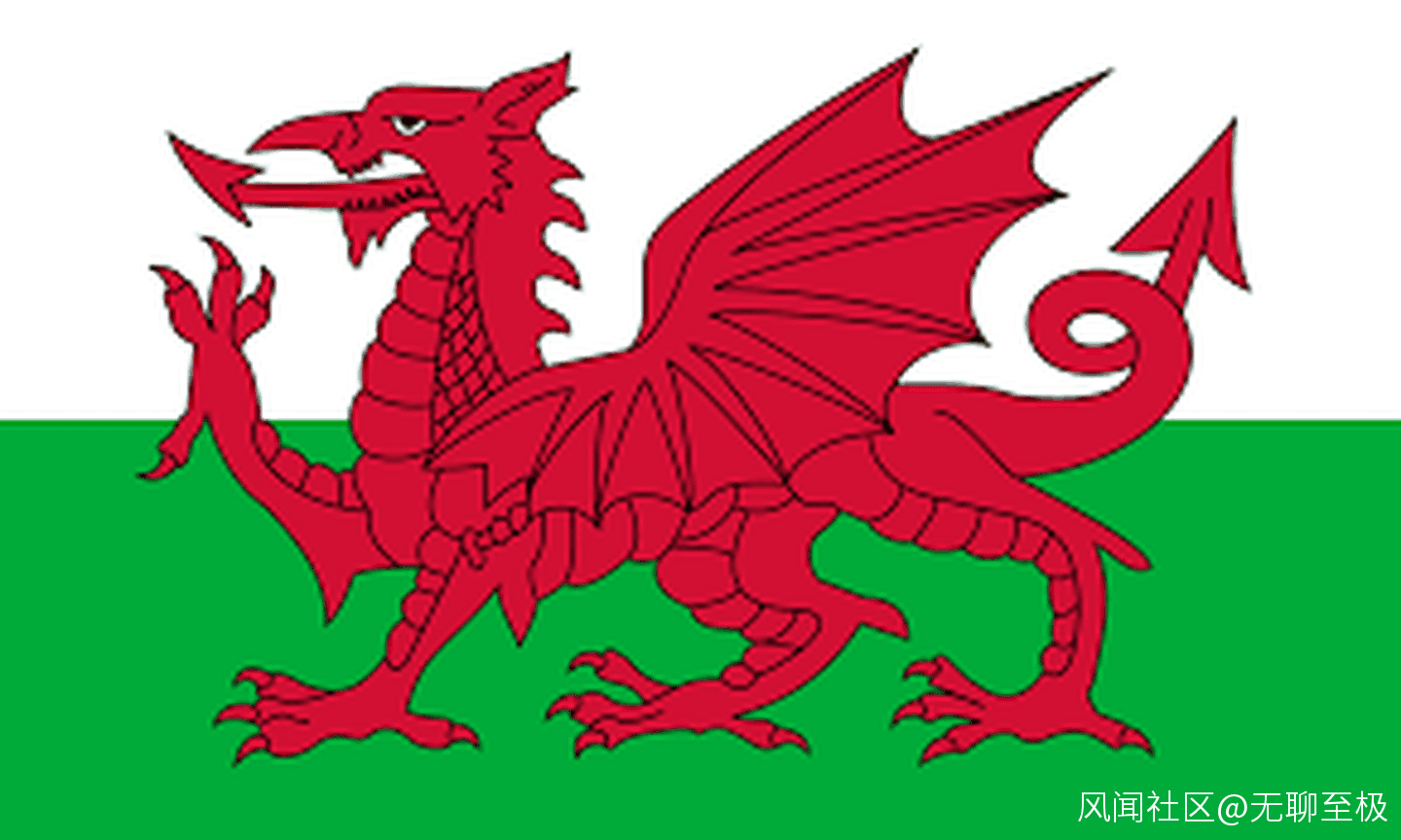 the Welsh Flag,威爾士旗,1801年正式確認,但dragon作為威爾士的象徵最早的文字記錄在5世紀,有關的信息感興趣的可以看圖片出處的鏈接文章。至少在威爾士,dragon的傳統意義並不是象徵邪惡,而是象徵力量。