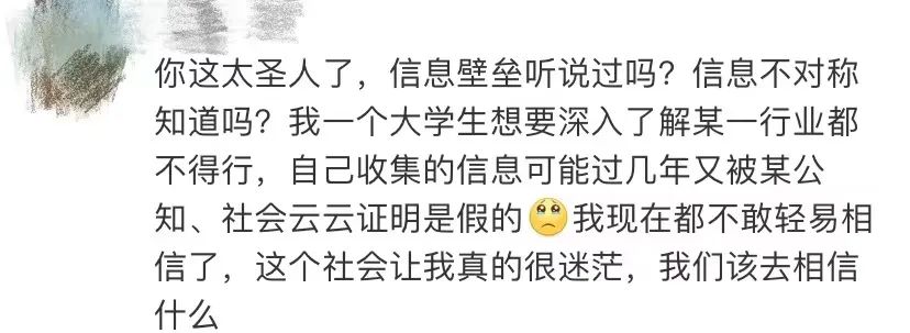“信息壁壘,自己蒐集的信息可能過幾年又被證明是假的。”