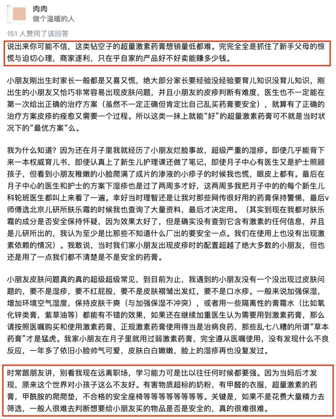“這類鑽空子的超量激素藥膏想銷量低都難。完完全全是抓住了新手父母的驚慌與迫切心理。