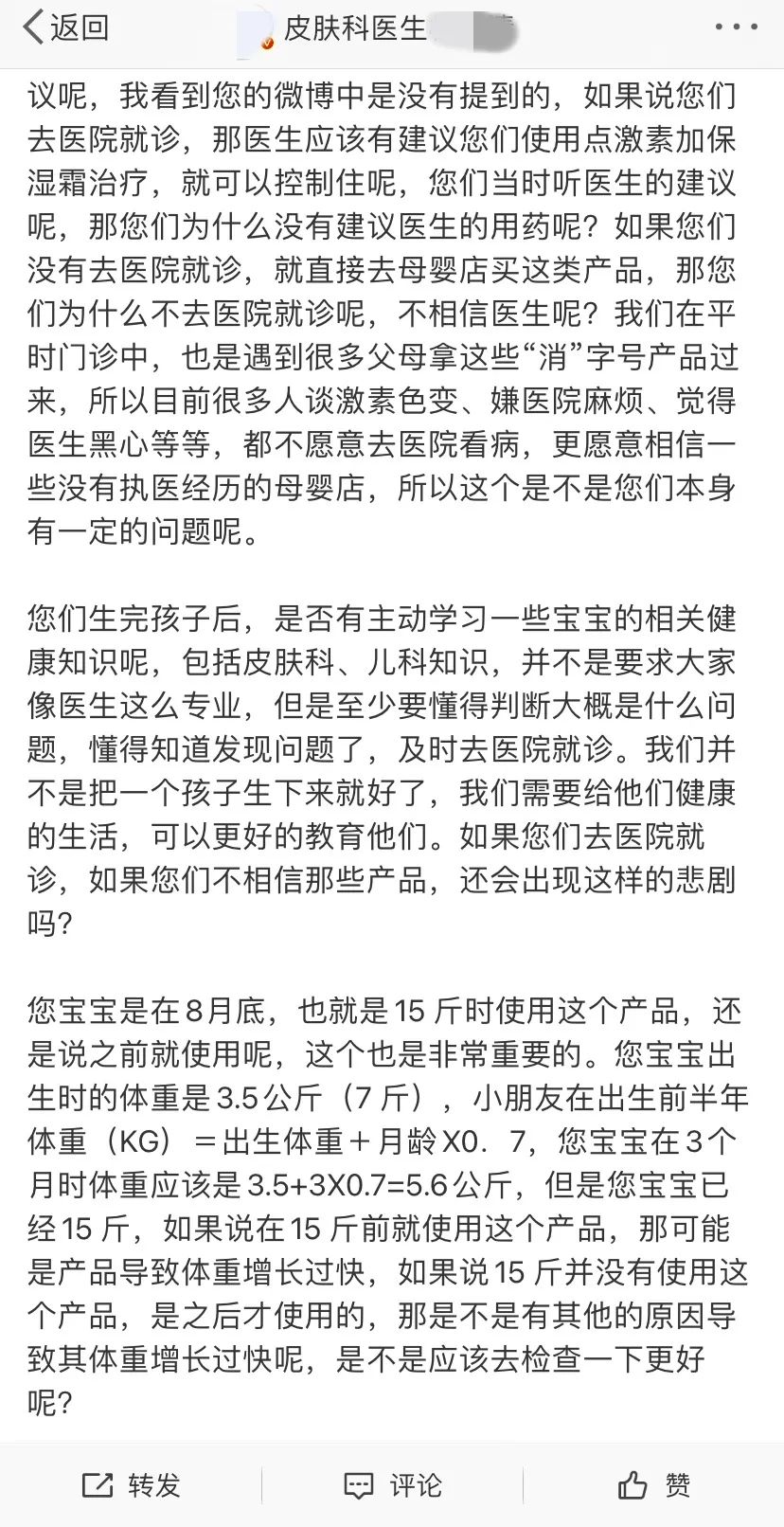 微博上的一位皮膚科醫生就列舉了柚子爸媽的“五宗錯”。