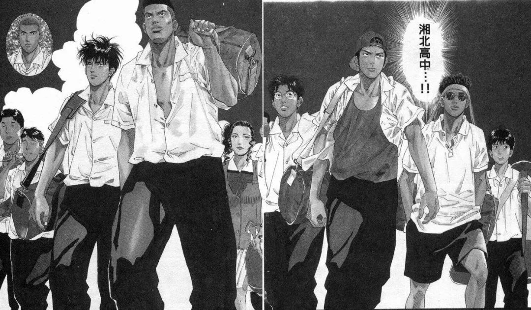 僅僅從穿衣風格就繪聲繪色刻畫湘北五虎的性格面,赤木襯衣系兩粒紐扣,這種單手扛包的姿勢一看就是話事人,宮城雙手插褲袋,悠然用腦袋“拎包”的腔調更是桀驁不馴。