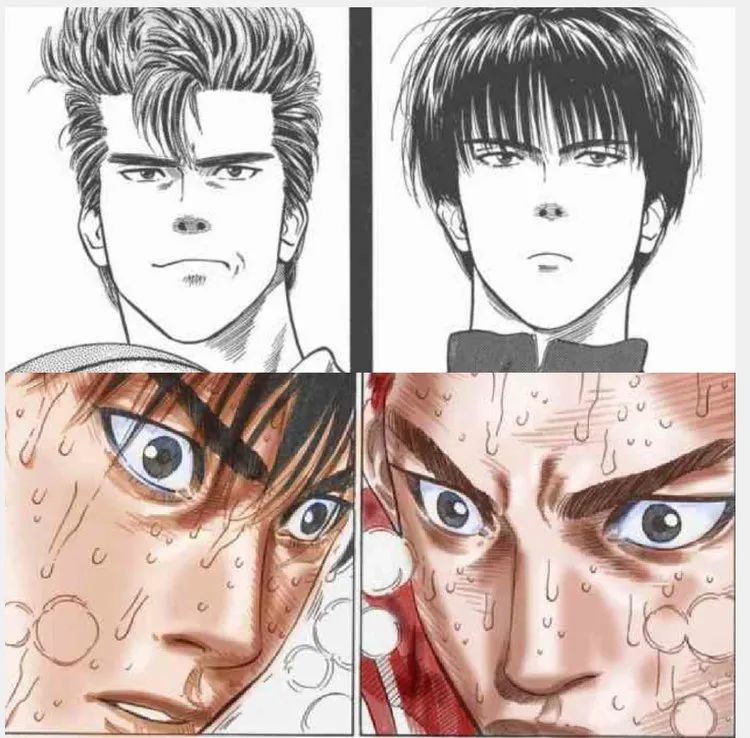 而井上在勾勒SD人物作品中,青出於藍!人設臉譜化認識度,飽滿度上各具匠心。例如南烈與瀧的面相特點是細眼,薄唇,高顴骨,非常符合混社會那套背後使絆的“小人”嘴臉。一之倉眼眶深邃,臉型方正,通常長着這類面相的人能忍事。福田其貌不揚的平凡下隱藏着脆弱,敏感的傲嬌。而那些不出世的天才,櫻木流川眉眼間的劍眉星目;仙道眉眼間的墨黑濃長;澤北眉眼間的高挑冷峻又是各具情態。所謂識得千人千面,皆是閲盡平生繁華,品世態炎涼,知人間冷暖,厚積而薄發。