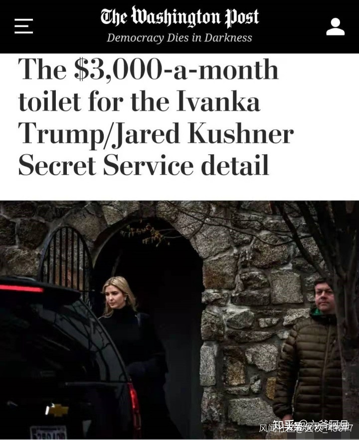 另外今天華盛頓郵報又披露了一個消息,伊萬卡家六個廁所不讓安保人員使用,所以特勤局只好在旁邊租了一個公寓專門用來上廁所,租金每個月3000美元。