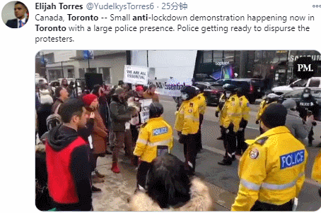 在抗議前,多倫多警方在推特發表了一份聲明提到,COVID-19大流行不僅僅是一個公共衞生問題,這還是一個公共安全問題。參加大型集會,包括抗議活動,不僅違反了法令,還使參與者和廣大社區面臨危險,警方將在抗議現場做出動作。