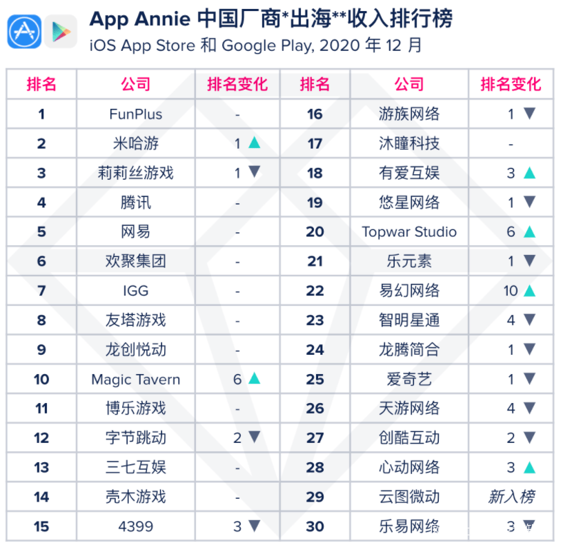 日前,APP Annie和Sensor Tower分別發佈了2020年12月中國出海廠商收入榜與手遊收入榜,為我們帶來最新的海外市場趨勢。