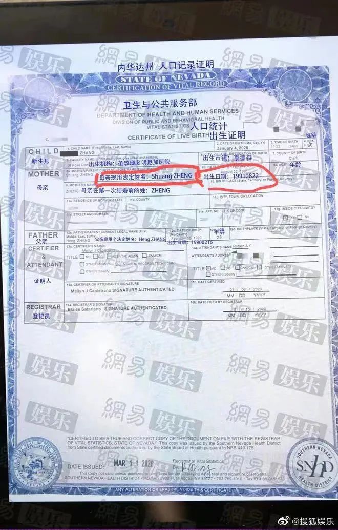 而真正雷神之錘的,是孩子在海外的出生證明也被拿了出來,而母親一欄寫的名字的拼音正是鄭爽的名字。