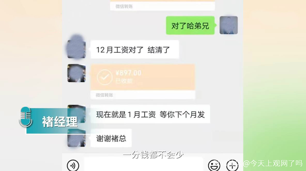 而在他以微信轉賬的方式支付工資後,小崔還表達了感謝。