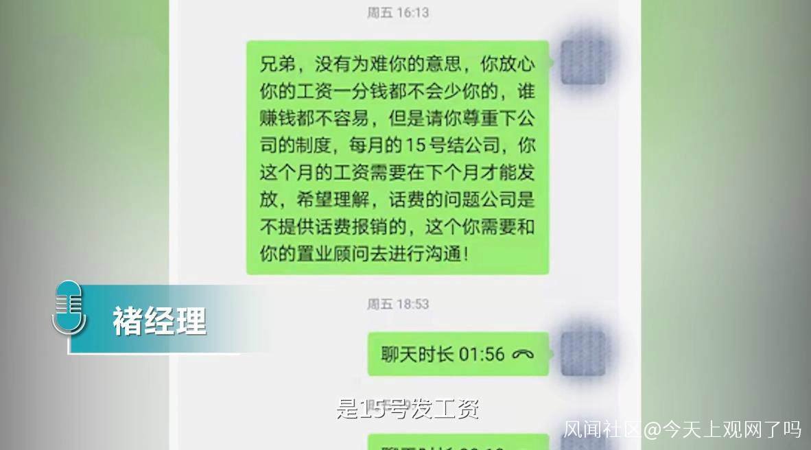 在褚某提供的聊天記錄中,他也是以公司制度為由解釋了為什麼不能當場結算工資的原因。