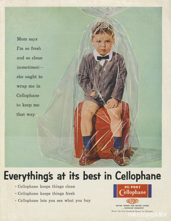 或許是孩子到最後連自己都被廣告成功洗腦,蠻不情願地坐在玻璃紙裏,雖面帶不悦,但也耐着性子承認了杜邦玻璃紙的妙處。