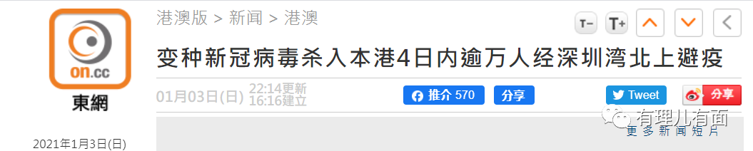 回顧香港東網的新聞,1月3日,一篇題為《變種新冠病毒殺入本港4日內逾萬人經深圳灣北上避疫》,揭示了民眾無奈之選擇——逃往內地!
