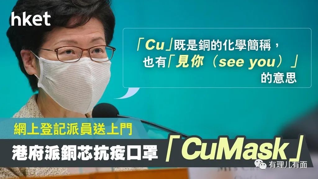 2020年5月份,香港特區政府通知香港市民只需網上登記就可以免費領到政府配送、快遞上門的可以重複使用60次的“銅芯抗疫”口罩,結果卻招致口罩配送太遲、涉及利益輸送、可能會是收集信息等等質疑,有別有用心者甚至造謠口罩有毒。