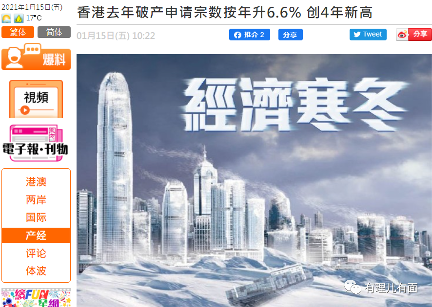 香港不少中小企業面臨生死存亡的嚴峻考驗。據香港破產管理署發出的強制公司清盤案及破產案統計數字顯示,去年提交破產呈請書有8693宗,按年增長6.6%;提交強制清盤呈請有449宗,按年升7.15%。兩個數字同為2016年以來新高。