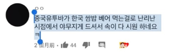 在她發佈的一則包飯和泡菜的吃播下,出現不少評論諷刺中國人“搶”包飯、泡菜為中國傳統美食,甚至在機翻後出現了“中國鬼子”的侮辱性詞彙,而Hamzy竟然一一點贊。