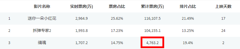 然而票房卻反響平平,單日票房甚至還不如《小紅花》和《拆彈專家》。