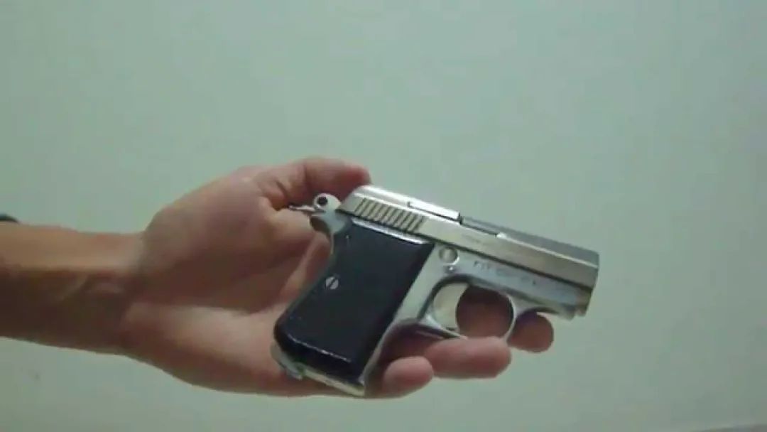 警察對其進行脱衣搜查,搜着搜着在這哥們屁股縫裏發現了一支已經上膛的.25口徑的泰坦手槍。