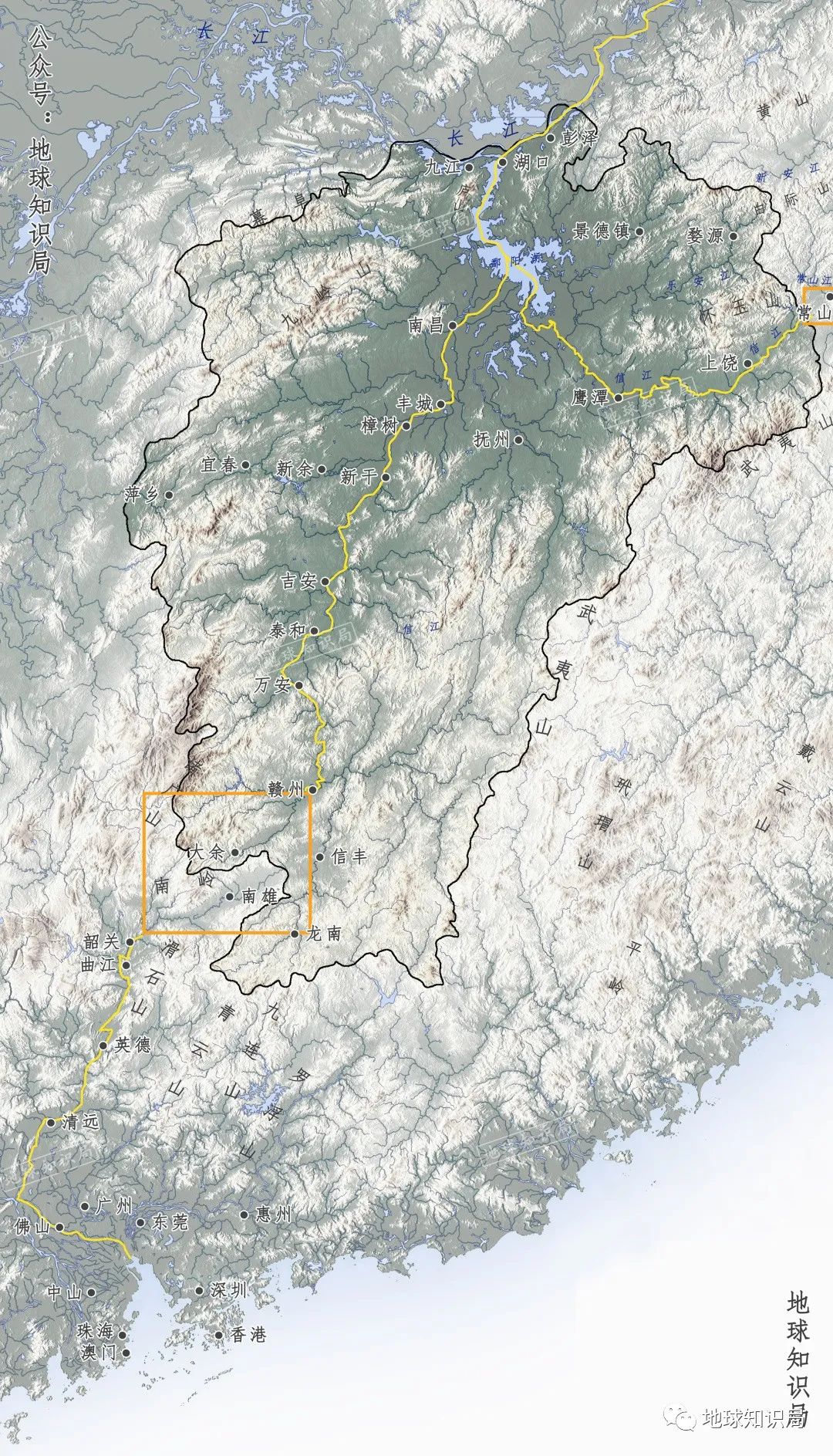 從江西南部沿河流至珠江三角洲
