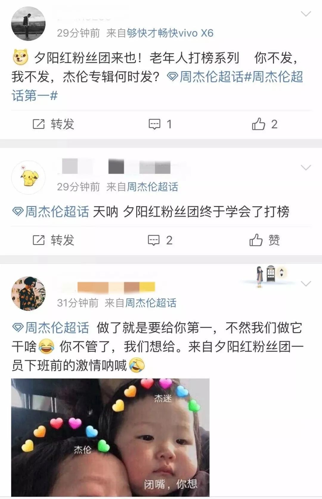 於是70後、80後、90後的老阿姨老叔叔,像打了雞血一樣,為周杰倫發起了一場“打榜之戰”。