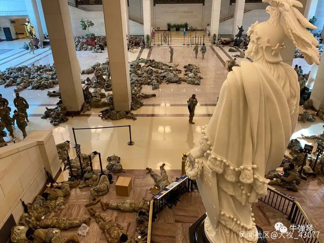但在迫在眉睫的安全警報下,一切都顧不得了。以至於美國大兵連個行軍牀都沒帶,只能蜷縮在國會地上睡覺。