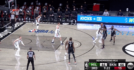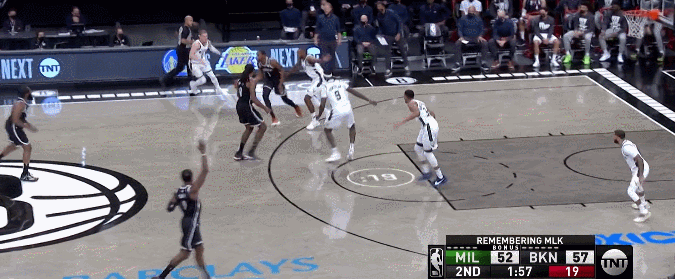 所以登哥第二節就啓動了,開局上來連得5分敲山震虎,雄鹿的防守就被他吸引過來了,他再給隊友助攻,籃網的銜接段陣容就可以和雄鹿咬住了。