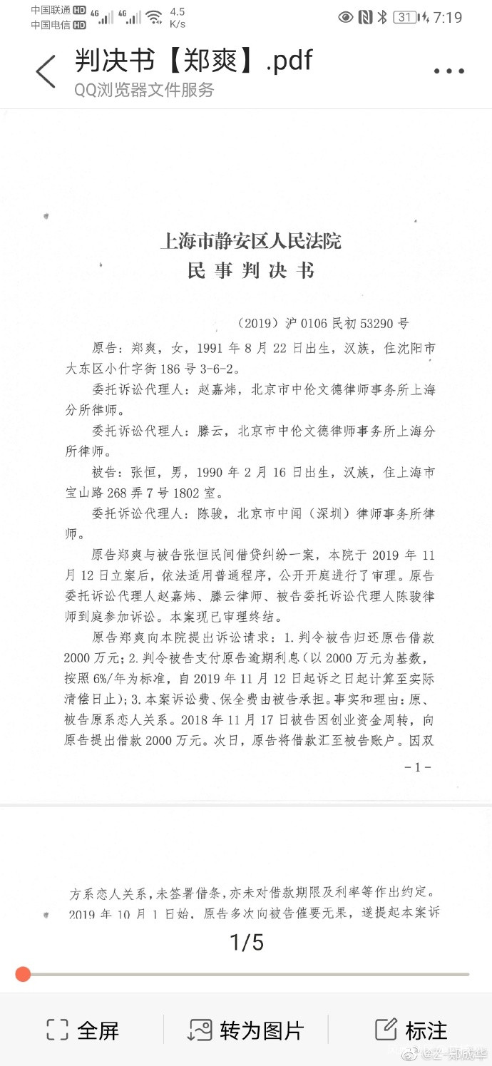 鄭爽最新回應:張恆出軌,鄭爽父親:張恆婚內出軌多次,借2000萬不還_風聞