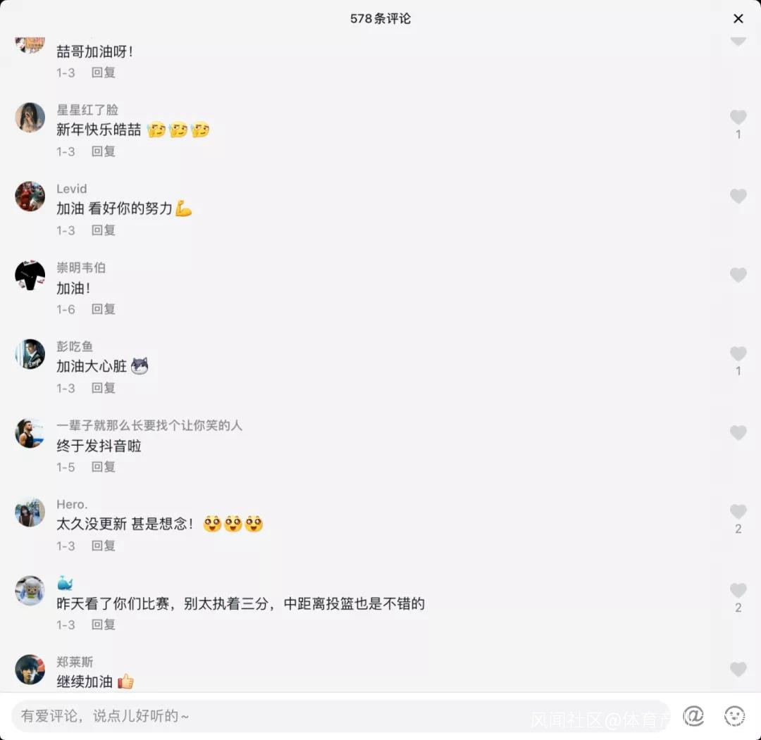 儘管順位不高,天賦也不算突出,楊皓喆一直在潛心訓練,狀態也肉眼可見地越來越好。見證了楊皓喆從開賽初的低迷到現在逐漸回暖,球迷紛紛跑到了楊皓喆的新年祝福視頻下面,寫下了一句句鼓勵的留言。