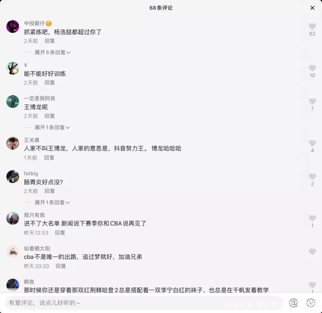 來到20-21賽季,孟博龍甚至多次淡出北控隊的大名單,遊離在一線隊的邊緣。僅有的5次出場機會,數據也乏善可陳。現在翻閲孟博龍的動態,下面有很多讓他「好好打球,少發視頻」的評論,孟博龍依然我行我素地保持着更新頻率,球迷們卻開始不買賬了。