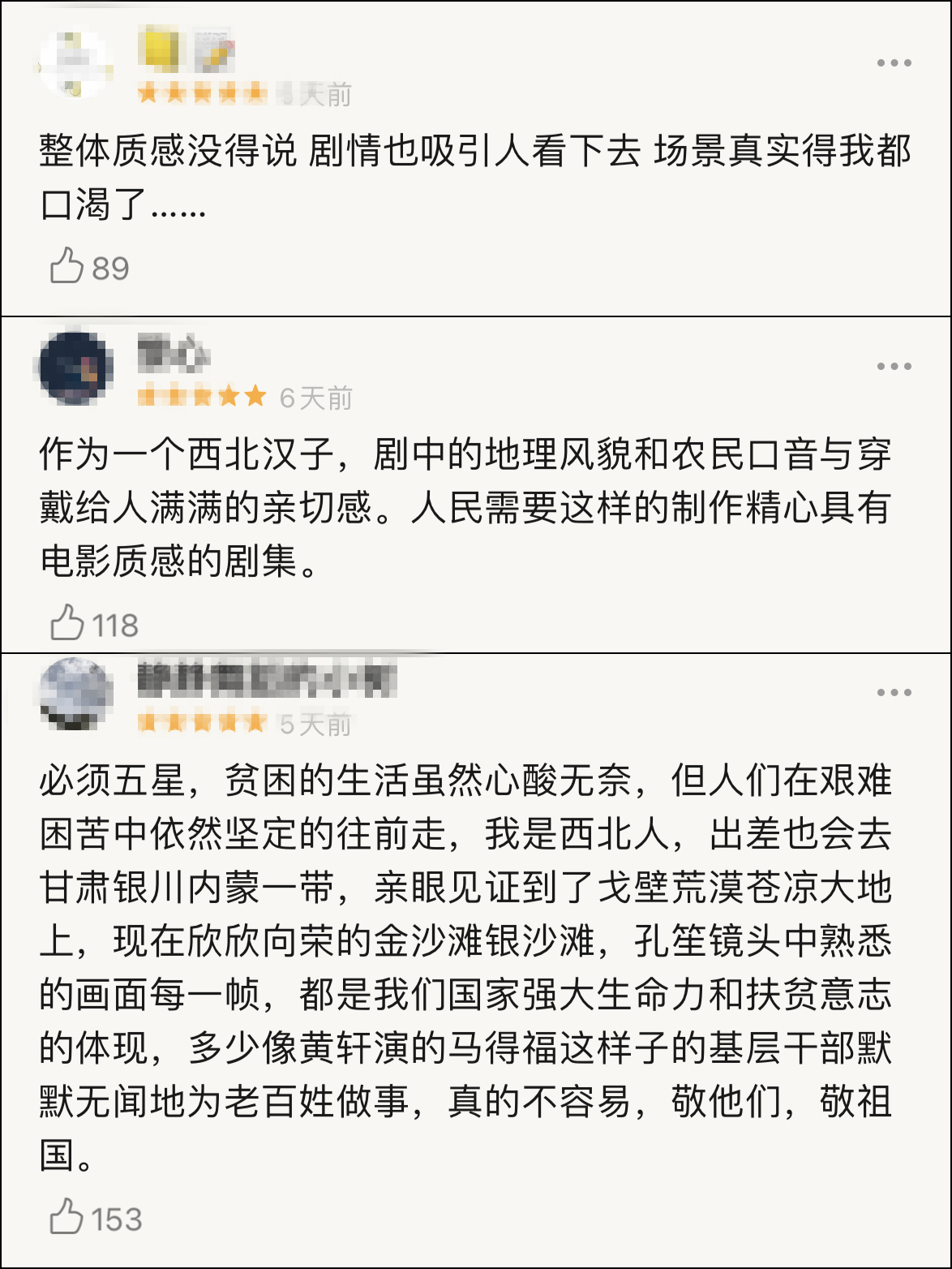 不過,總的來説,該劇口碑旗開得勝。目前,《山海情》已播出到13集,豆瓣評分從開分9.1上漲至9.2分,算是“扶貧劇之光”了。