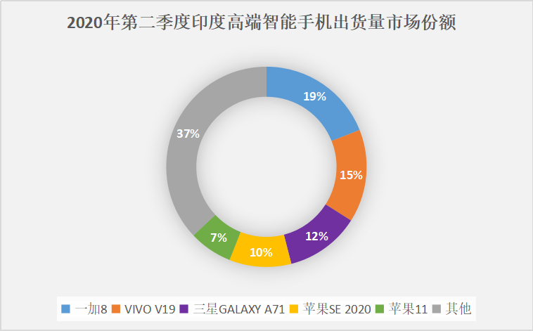 一加抓住了蘋果11和蘋果12之間的空檔期,佔據近20%的市場份額,而排在其後同樣是看到趨勢、抓住需求的vivo V19,高端手機的復甦力量由此可見。該研究報告最後總結時指出,“目前,小米、OPPO和vivo都已經進入高端智能手機市場,印度區域不再是三星、蘋果和一加公司等少數幾家寡頭所壟斷。”