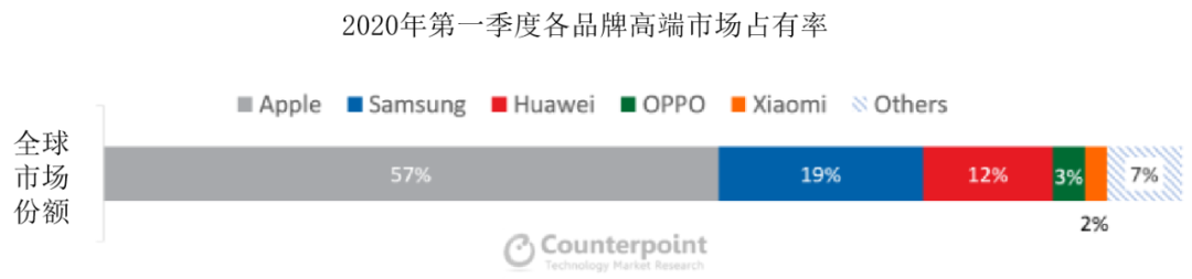 就數據來看,受疫情影響,高端機型在2020年第一季度銷量同比下降了13%,但即便如此,高端機仍然貢獻了全球智能手機總收入的57%。