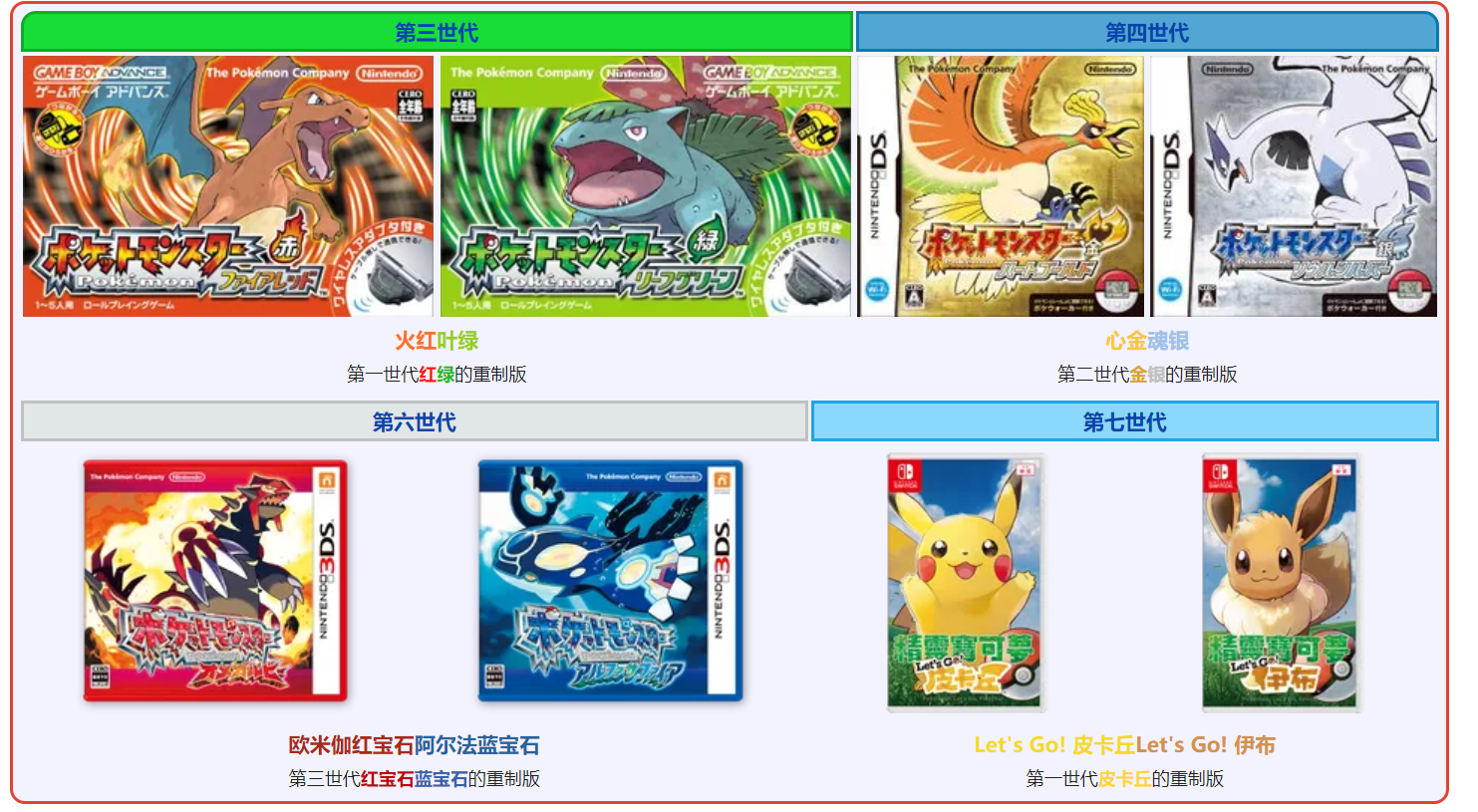 已有的寶可夢重製遊戲(來源:神奇寶貝百科)